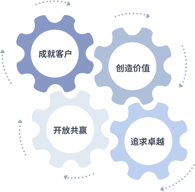 成就客户是一切决策的出发点,创造价值是衡量所有工作的标准,追求卓越是GG扑克做事做人的态度,开放共赢是GG扑克的格局也是最终的结果。价值观的齿轮环环相扣,推动着组织里的每个人不断向前。